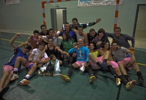 Nadadouro ascende aos escalões nacionais No dia 16 de Maio fez-se novamente história na colectividade da A.C.R. do Nadadouro. A equipa sénior de futsal masculino subiu mais uma vez aos escalões nacionais desta modalidade. Falar do jogo que encerrava o campeonato sem falar de alguns pormenores é pura injustiça a quem deu o seu melhor nestes nove meses de luta por um objectivo traçado com a certeza de acreditar num conjunto de atletas capazes de levar o nome desta terra bem para lá do seu concelho. No início do campeonato, quando foi formado o plantel, a perda de Ricardo Loja, André Ribeiro, Fifi e ainda Rui Macedo, criaram um clima de desconfiança dos aficionados da modalidade perante a possibilidade desta equipa técnica conseguir levar jogadores para o Nadadouro que conseguissem lutar com as restantes equipas de igual para igual. Mas o plantel lá foi formado, tendo por base jogadores de colectivo, jovens, com vontade de trabalhar. E foi dentro dessa linha que semanalmente se foi construindo esse trunfo, “o acreditar no trabalho”, que viria a ser determinante no sucesso final deste grupo. Lógico que o trabalho de todos os seccionistas foi essencial, o excelente trabalho e dedicação da fisioterapeuta Milene, e ainda aquela que é a parte mais valorizada por todos os atletas e equipa técnica, o jantar depois dos jogos, nesse capitulo a cozinheira e amiga Rosário esteve ao mais alto nível. Chegado o momento da verdade, o jogo do título, a equipa não vacilou. Demonstrou capacidade de luta, alma e vontade de vencer. Desde do começo da partida a pressionar alto, não deixando a equipa das Chãs, que veio ao Nadadouro para discutir o resultado, os locais foram criando várias ocasiões de golos, até que Soveral, em dia sim, faz o 1º da partida, levando o público que ocorreu ao Nadadouro a vibrar com a vantagem. Passados 4’, novamente Soveral a conseguir ganhar a bola ainda no meio campo defensivo, a correr 20 mts e a rematar forte e colocado fazendo o 2-0. Delírio no banco do Nadadouro que já começava a acreditar ainda mais no título. A equipa das Chãs não se desmoronou e numa boa combinação na ala direita conseguiu reduzir para 2-1. Sentiu-se nas bancadas um nervosismo, fruto das dificuldades que a equipa sentiu nos últimos jogos, mas o plantel uniu-se e veio novamente com tudo para cima do adversário, e aos 26’, Paulinho consegue libertar-se de marcação, e na zona central remata forte e colocado, fazendo o 3-1 com que se atingiu o intervalo. No descanso a equipa técnica fez o plantel acalmar os ânimos, só faltavam 30’ para o objectivo. Para o 2º tempo voltaram a criar muitas oportunidades mas o tempo foi correndo, com a equipa das Chãs a jogar sistematicamente com o guarda-redes avançado, mas a não conseguir tirar daí vantagens. O 4º golo do Nadadouro surge na melhor jogada colectiva, boa combinação na ala esquerda, com Paulinho e Bebé e a bola a ser jogada para o interior da área onde surge André Santos a finalizar com êxito. O sentimento de vitória já estava instalado no banco e nas bancadas onde o público não parou de aplaudir e gritar “Campeões, Campeões, nós somos Campeões”. O jogo até ao final ainda conheceu mais alterações no marcador, a equipa das Chãs reduziu para 4-2, Bebé ainda facturou o seu 28º golo do campeonato, e a equipa técnica do Nadadouro fez rodar todos os elementos do grupo para este jogo de consagração final. Depois do apito do árbitro, foi a festa, as lágrimas, os abraços a alegria do dever cumprido.
