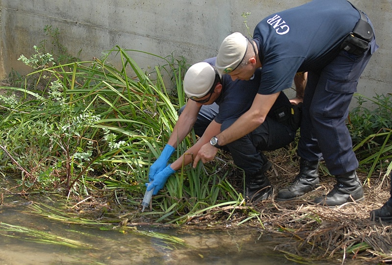 As unidades especiais de operações subaquáticas e de matérias explosivas e catástrofes do grupo de intervenção de proteção e socorro da GNR enviaram vinte elementos, incluindo mergulhadores, para recolher amostras junto à Quinta das Flores, no Olho Marinho.