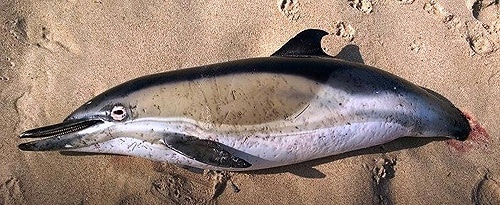 Um golfinho sem a barbatana caudal deu à costa do Baleal na tarde do passado dia 19. Segundo a Surfider Foundation Peniche, que relatou a descoberta, “a barbatana caudal deste golfinho foi-lhe mutilada possivelmente por estar preso em redes de pesca.