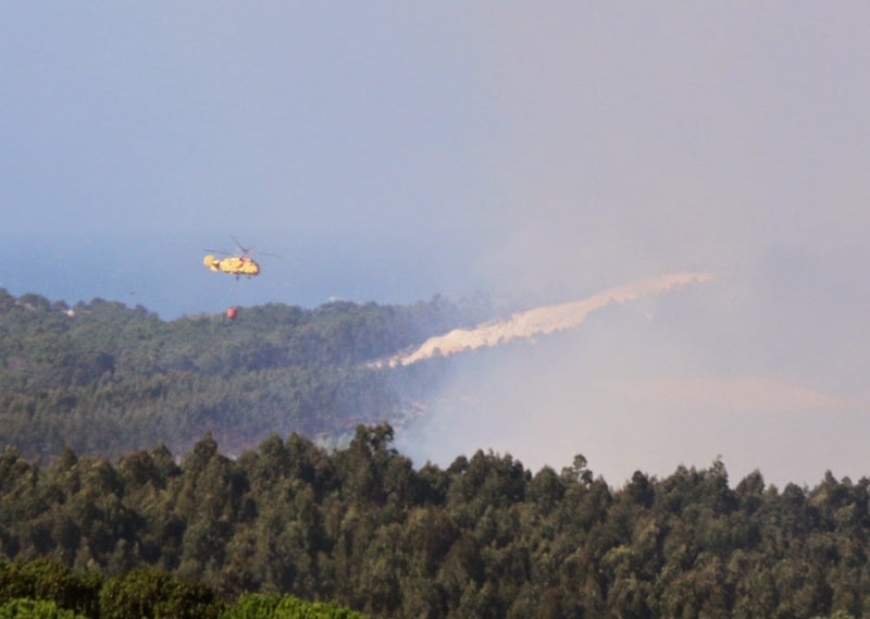Helicópteros ajudaram a combater as chamas (foto Carlos Tiago)