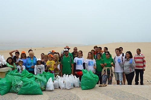 Apesar do nevoeiro, os voluntários foram divididos em três grupos que recolheram algumas toneladas de lixo, correspondentes a maioria a materiais de plástico, que foram deixados no areal, junto ao campo de voleibol até zona do mar.