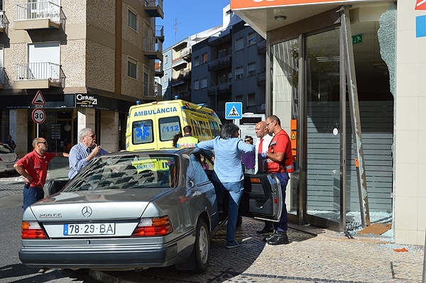 O acidente causou aparato na zona e os funcionários do banco apanharam um susto quando ouviram e sentiram o estrondo na porta.