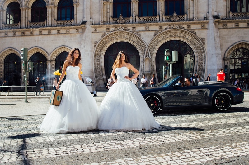O catálogo da nova coleção exclusiva, que estará disponível já no próximo mês às futuras noivas, teve como cenários diversos espaços da Baixa de Lisboa, como Terreiro do Paço, o Rossio, o Elevador de Santa Justa, os míticos meios de transporte público em Lisboa, os elétricos e até as monumentais fontes do Rossio, atraindo centenas de olhares e multidões para assistir à produção fotográfica da estilista.