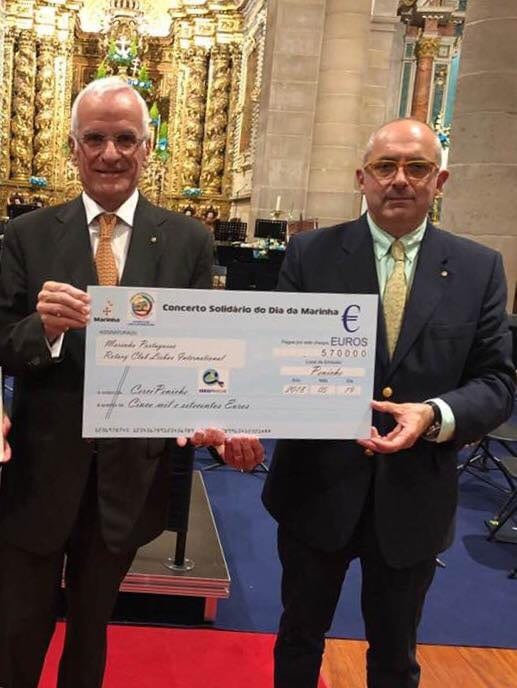 O Clube Rotary Lisboa Internacional entregou à Cercipeniche, cooperativa que ajuda pessoas com deficiência ou com outro tipo de dificuldades de inserção social e profissional, um cheque de 5700€, resultante de um concerto solidário da Marinha.