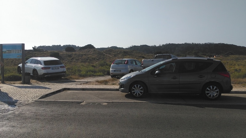Este ano decidiram param os veículos em cima das arribas naturais, junto à entrada para a praia.
