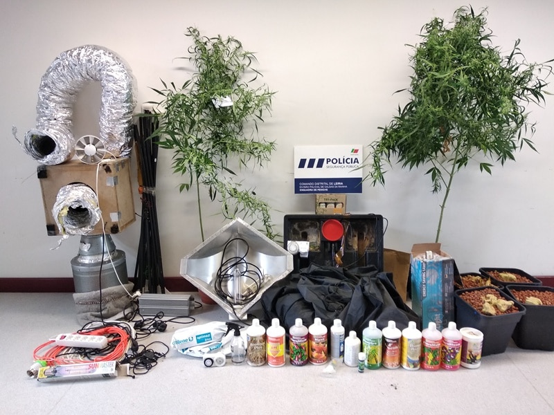 Foram apreendidos duas plantas de cannabis com cerca de metro de meio de comprimento, vários fertilizantes e diverso material utilizado na constituição de uma estufa de cultivo, que se encontrava instalada num dos quartos da habitação.