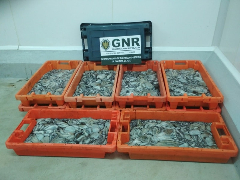 O Subdestacamento de Controlo Costeiro da Nazaré da GNR apreendeu 180 quilos de polvo no passado dia 17, no âmbito de uma ação de fiscalização rodoviária, direcionada ao transporte de pescado, moluscos bivalves vivos e crustáceos. O polvo não possuía o peso mínimo regulamentar de venda (750 gramas).