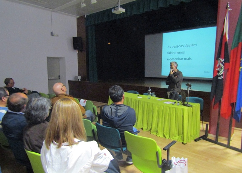 Pedro Salgado falou sobre o modo como são elaboradas as ilustrações científicas, desde a sua conceção, até aos materiais e equipamentos utilizados. Realçou também a importância da ilustração científica em vários contextos. Durante duas horas, a assistência pôde acompanhar com entusiasmo as explicações referentes a cada ilustração projetada. A sessão terminou com um pequeno vídeo relatando experiência vivida na Ilha do Príncipe por uma equipa da qual faziam parte vários ilustradores científicos.
