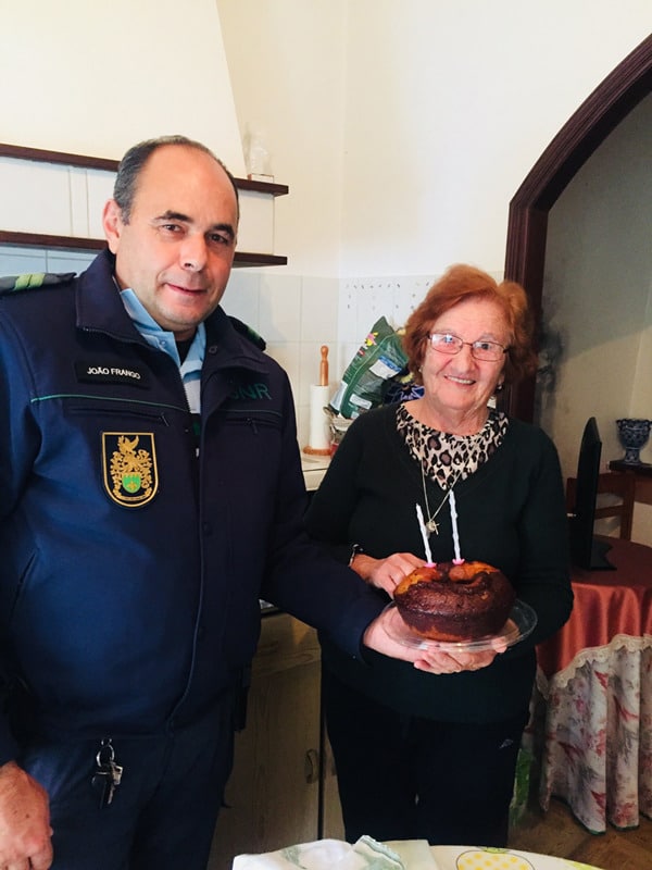 Assinalando os 84 anos da senhora, os militares quiseram fazer a diferença e marcar a presença junto de quem desde há muito já quase não tem ninguém, tendo obtido como retorno um enorme sorriso de gratidão.