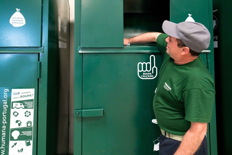 “Ao tratar-se de um dos setores mais poluentes do mundo, a moda necessita de soluções sustentáveis para garantir o correto fim do seu ciclo de vida ou, em alterativa, promover a sua reutilização. Considerando que por cada quilo de roupa reutilizado e não incinerado se evita a emissão de 3,169 kg de CO2 de acordo com um estudo da União Europeia, é essencial dar destaque ao tratamento dos recursos têxtis como combate às alterações climáticas. Por conseguinte, ao recuperar 60 toneladas de têxtil significa que se deixou de emitir mais de 193 toneladas de CO2 para a atmosfera”, refere Filipa Reis, promotora nacional da Humana. Em Portugal “deitam-se fora aproximadamente 200 mil toneladas de roupa usada anualmente, parte da qual vai parar aos caixotes do lixo indiferenciados. Apesar de, na sua totalidade, os resíduos têxteis perfazerem cerca de 4% de todos os resíduos produzidos no nosso país, tem-se verificado nos últimos anos uma subida do seu volume, devido a uma realidade que não é exclusiva a Portugal, mas comum a todo o mundo ocidental como resultado da fast fashion – moda acessível que segue tendências muito efémeras e que, por isso, se torna obsoleta num curto espaço de tempo”. Segundo Filipa Reis, em Portugal “é fundamental a consciencialização da população, sobretudo dos mais jovens, já que estará futuramente nas suas mãos a proteção ambiental e este passo só pode ser dado através da educação”. O trabalho da Humana desenvolve-se em estrita relação com os municípios para a instalação de contentores que garantem uma segunda vida a cada peça de roupa desperdiçada. A associação terminou o ano com 826 contentores verdes distribuídos por todo o país através de mais de 142 parceiros públicos e privados. Trata-se de um modelo de gestão sustentável dos resíduos que apoia as administrações locais a atingir o objetivo da recolha seletiva de têxteis obrigatória em 2025 por parte de todos os estados membros, imposta pelas diretrizes da União Europeia.
