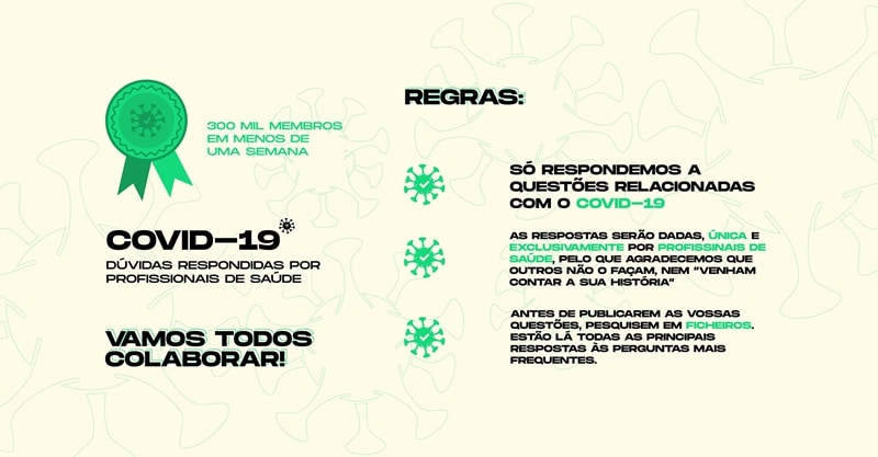 Este grupo, criado a 15 de março já conta com 369 893 membros, que todos os dias inundam o feed com dúvidas sobre riscos de infeção, sintomas e procedimentos, todos eles relacionados com o surto de Covid-19.