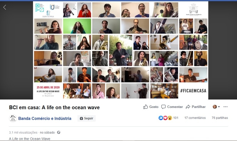 Com recurso ao Facebook, a banda orientada pelo maestro Adelino Mota tocou “A Life on the Ocean Wave”, de