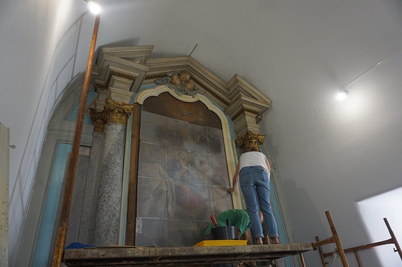 Foi possível aferir o excelente estado de conservação das madeiras da estrutura retabular, bem como da moldura que sustenta a tela, estando reunidas as condições para uma intervenção de consolidação do suporte, preenchimentos das lacunas e recuperação da tela para o seu estado original.