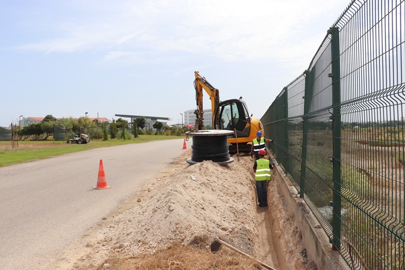 Trabalhos de instalação dos postes elétricos na Rua da Praia do Molhe Leste