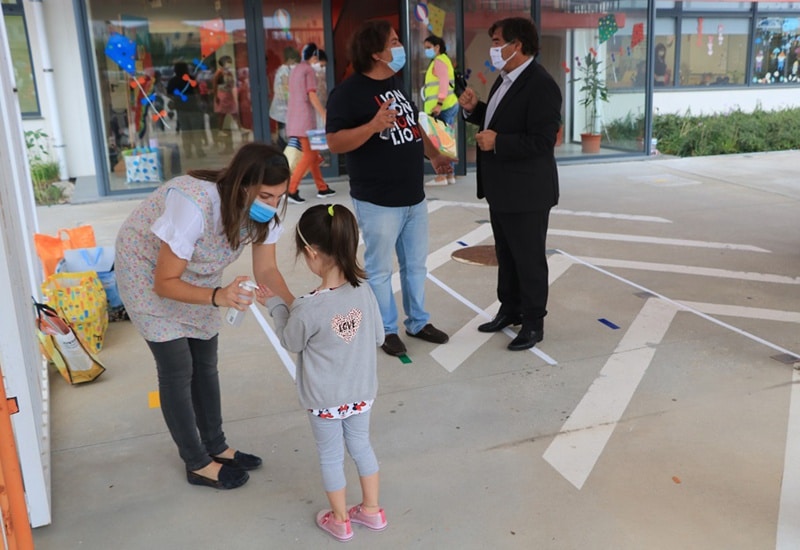 Antes da entrada no edifício os alunos procedem à desinfeção das mãos, sendo de seguida reencaminhados para o circuito associado ao respetivo ano de escolaridade, permitindo, desta forma, que haja apenas contacto entre estudantes do mesmo nível de ensino, como explicou o coordenador do Centro Escolar, Luís Duarte.