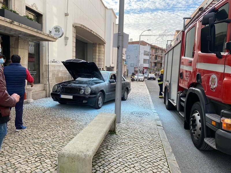 Por precaução foi derramado pó de dois extintores na zona de onde vinha o fumo para evitar males maiores. Quando os bombeiros chegaram observaram a inexistência de perigo de incêndio. Derramaram alguma água sobre a zona coberta pelo pó dos extintores e lavaram o passeio onde o veículo se encontrava.
