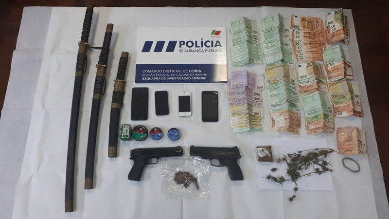 Desenvolvida pela Esquadra de Investigação Criminal da PSP das Caldas da Rainha no passado dia 18, entre as 09h e as 12h, dando cumprimento a cinco mandados de busca – um domiciliário, um não domiciliário e três em automóveis – a operação permitiu apreender 26 mil euros em notas, 57,29 gramas de haxixe, o que equivale a 114 doses individuais, 3,56 gramas de liamba, duas pistolas de ar comprimido,14 munições de calibre 9mm, três sabres, quatro telemóveis de várias marcas e modelos, e diversos objetos relacionados com o processo.