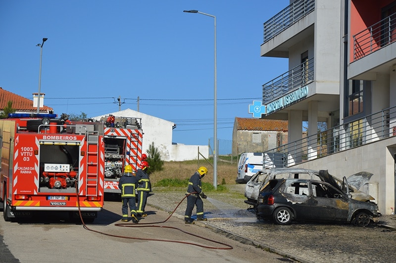 O alerta foi dado às 13h37 desta segunda-feira, para um incêndio numa zona residencial, na Rua Ramiro Figueiredo dos Santos, na Colina Sul, em Santo Onofre. As chamas começaram num veículo ligeiro de passageiros que tinha estacionado pouco antes e propagaram-se a outra viatura que estava a escassos metros de distância.
