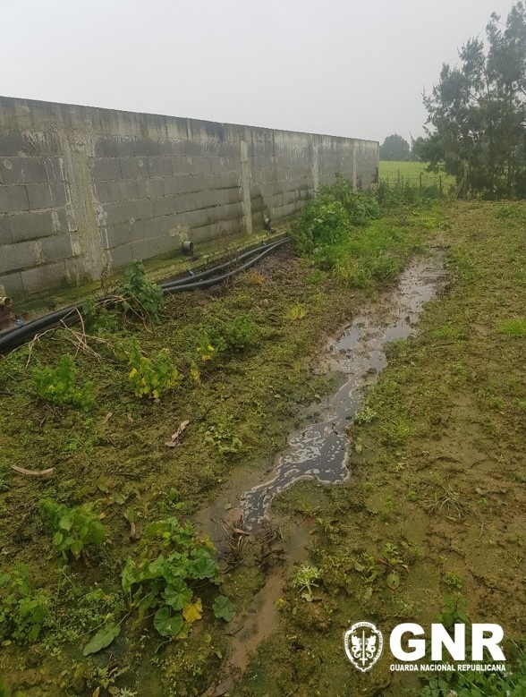 A descarga poluente era proveniente de uma exploração suinícola e está a escorrer livremente para o solo sem qualquer tipo de mecanismo que assegurasse a sua depuração.