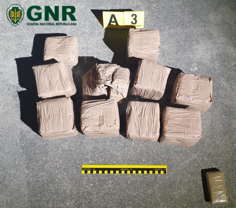 Foi possível verificar que o suspeito tinha diverso produto estupefaciente na sua posse, tendo sido apreendidas 20410 doses de haxixe (10,205 quilos) e 1274 doses de canábis (3,185 quilos).