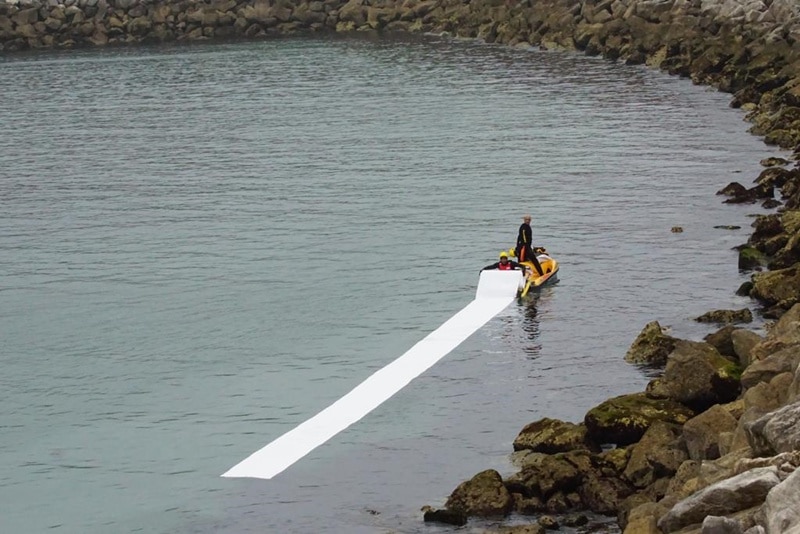 Após o alerta dado na véspera, pelas 12h30, por um pescador lúdico, três elementos da Polícia Marítima foram ao local e constataram que a mancha apresentava uma extensão de cerca de 600 metros de comprimento e perto de quatro metros de largura.