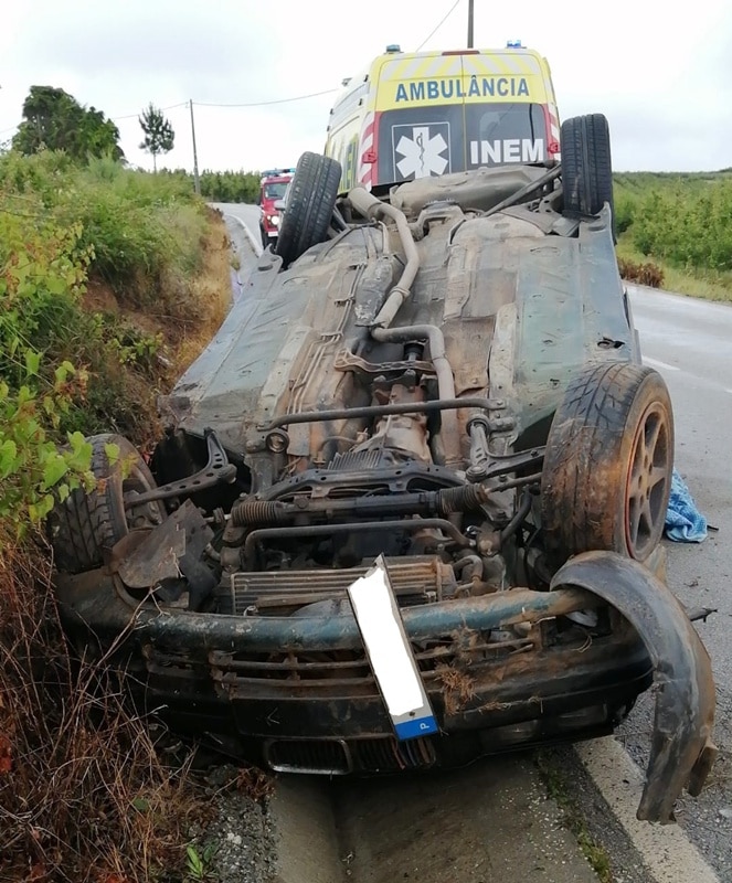 Acidente no Bombarral, tendo o carro capotado (foto BVB)