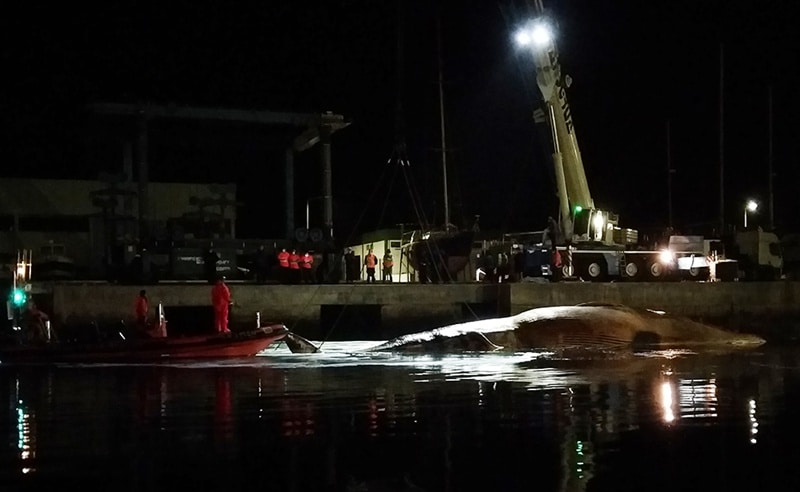 O comandante da Capitania do Porto da Nazaré, Zeferino Henriques, relatou que “decidimos trazer a baleia para o porto da Nazaré porque não existiam outras condições melhores para ser removida”.