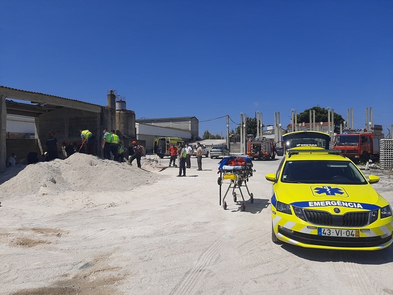 O trabalhador foi resgatado com sucesso e transportado numa ambulância para o hospital de Torres Vedras.
