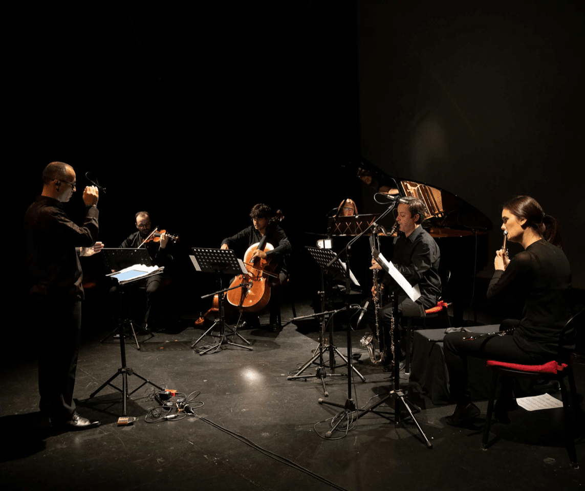 O Sond’Ar-te Electric Ensemble é composto por Sílvia Cancela – flauta, Nuno Pinto – clarinete, Vítor Vieira – violino, Jorge Alves – viola, Luís André Ferreira – violoncelo, Elsa Silva – piano, Tomás Moital – percussão, Paula Azguime – desenho de som, Miguel Azguime – eletrónica e direção artística e Miso Studio – técnica tempo real.