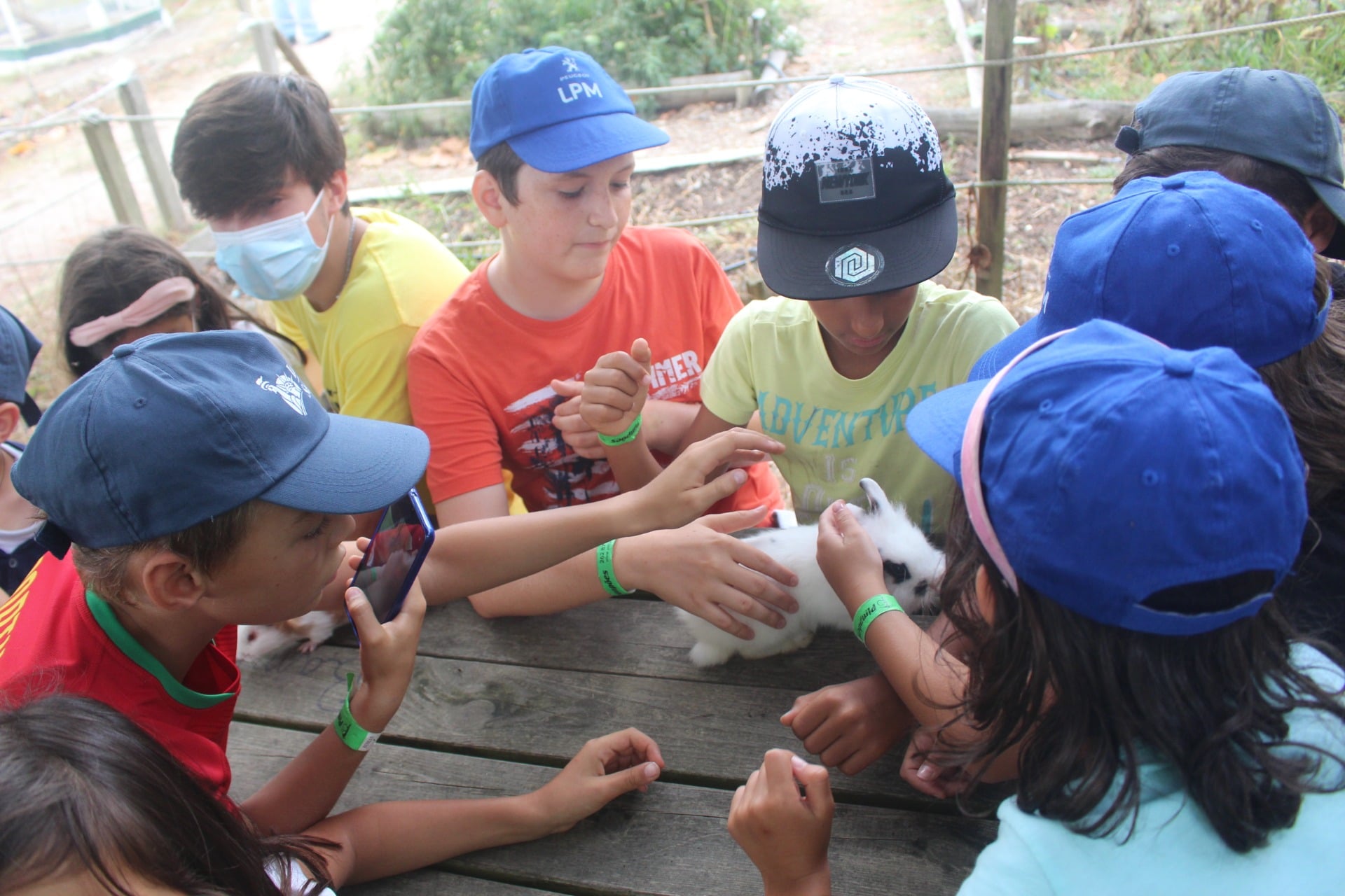 Os almoços foram feitos por turnos e sempre ao ar livre e era obrigatório o uso de máscara nos locais fechados para as crianças com mais de 10 anos.