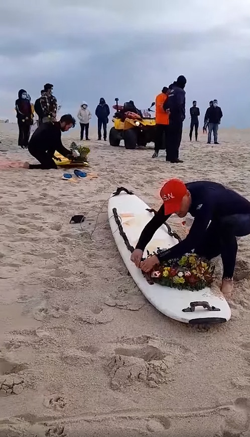 No mar da Foz do Arelho foram deixadas flores em sua homenagem.