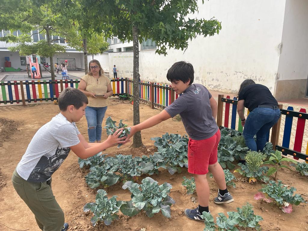 Assim, como gesto simbólico, os alunos da turma do 2ºB e 4ºB deste complexo escolar foram colher à Horta Bio dos Arcos diversos legumes, entregando-os às senhoras da cozinha, para serem confecionados para o seu almoço.