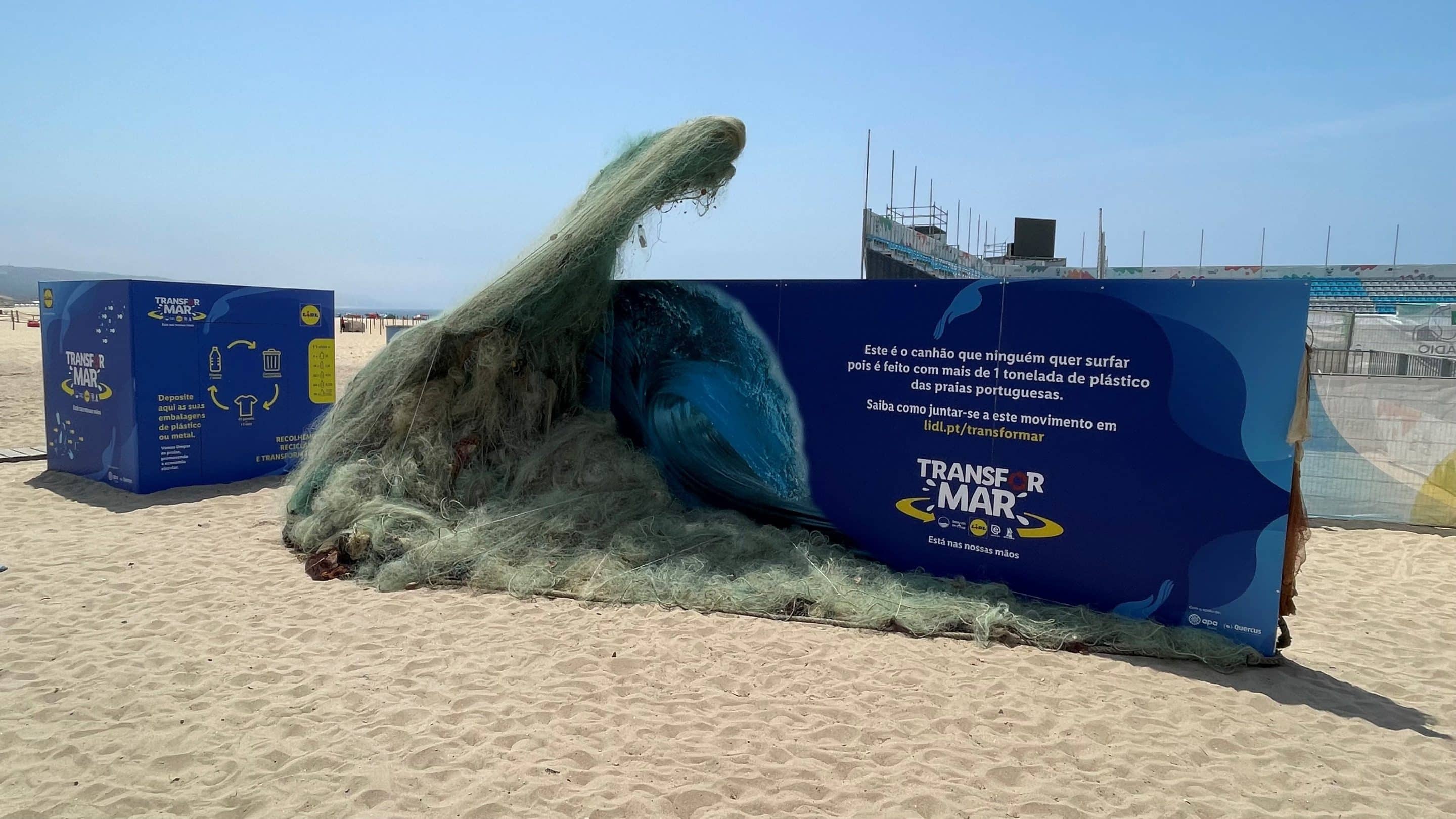 A Nazaré é um dos locais que recebem as esculturas da artista Soraia Domingos, feitas com plástico e resíduos não passíveis de serem reciclados, recolhidos na costa portuguesa pela Marinha Portuguesa, ao abrigo do projeto TransforMAR, do Lidl. Todo o restante material plástico, passível de ser reciclado, será convertido em t-shirts.