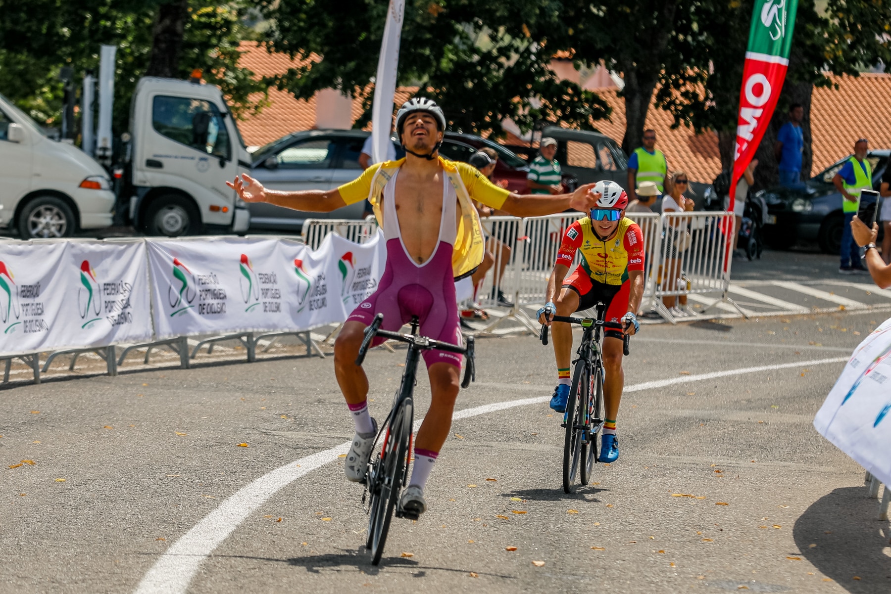 Perante o poderio demonstrado por Tiago Nunes foi o próprio camisola amarela a responder. António Morgado foi no encalço do corredor da equipa penafidelense e só o ultrapassou com a meta à vista, erguendo os braços ao cabo de 2h41m54s de etapa, dando aos bairradinos o triunfo em todas as etapas da competição. Tiago Nunes chegou com o mesmo tempo. O terceiro, a 8 segundos, foi José Bicho (Almodôvar/Formação Team SCAV).