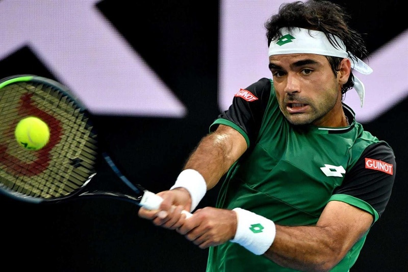 O atleta das Caldas da Rainha, 202.º da hierarquia, pretendia seguir em frente no primeiro Grand Slam da temporada, o que conseguiu o lourinhanense Gastão Elias, 234.º do ranking mundial de ténis, ao derrotar o japonês Kaichi Uchida, 197.º, por 6-7 (5-7), 7-6 (7-3) e 6-1, em duas horas e oito minutos.