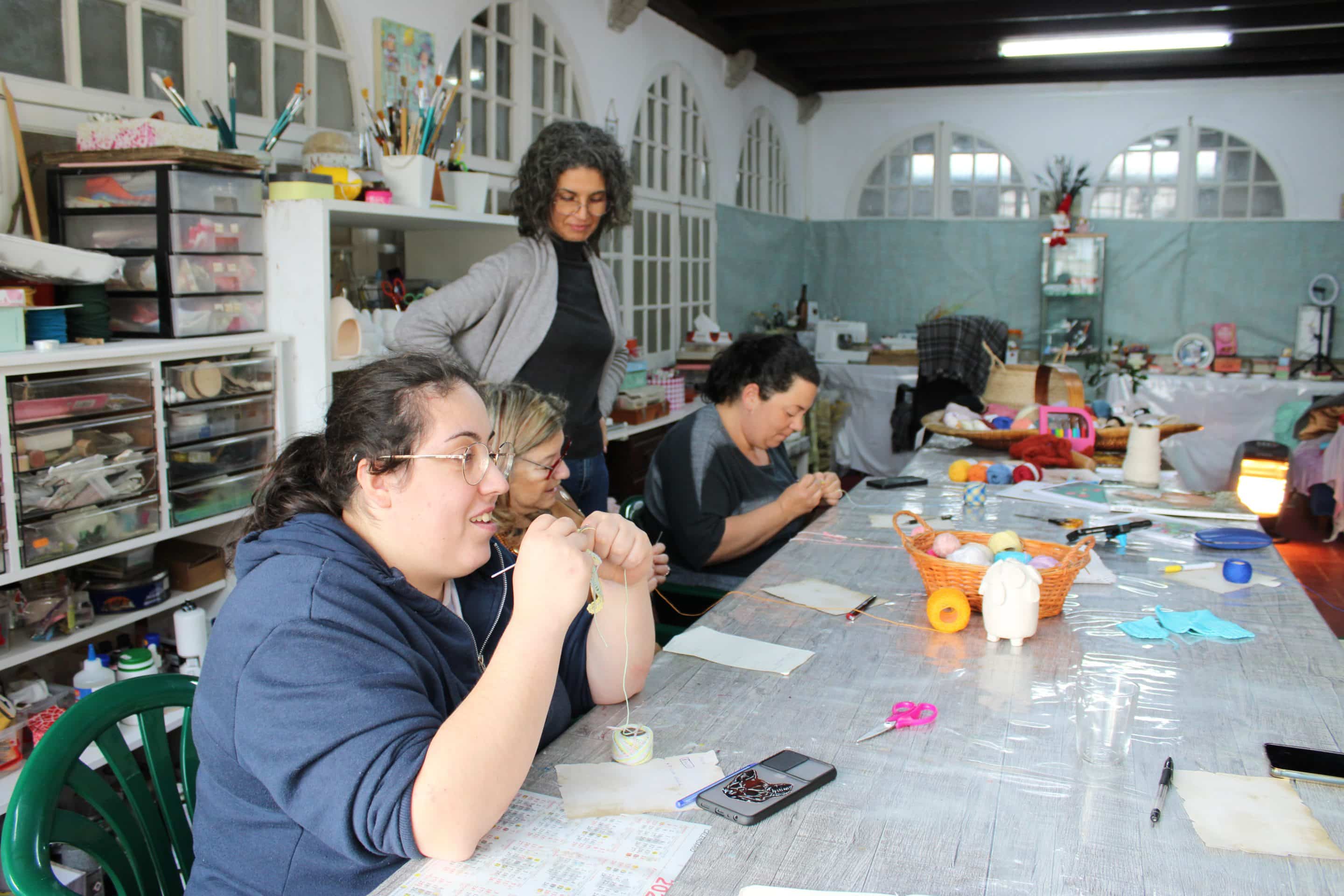 Uma das aulas é de iniciação ao crochet, tendo as aulas aprendido os pontos básicos para realizar esta técnica popular, que