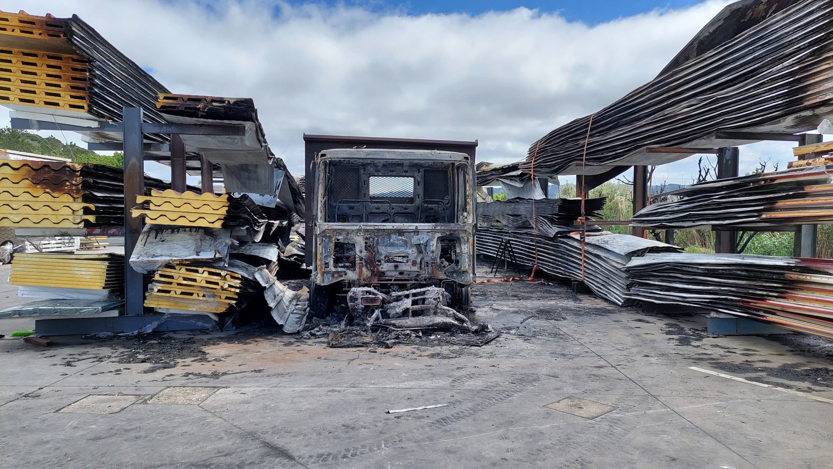 “Havia muito painel de sanduíche. Para precaver este tipo de coisas temos tudo em prateleiras e em separado, porque se estivesse ao monte e se não tivessem sido rápidos tinha ardido tudo. Todo destruído ficou um camião que se encontrava nas instalações porque a primeira coisa que ia ser feita na terça-feira era carregá-lo”, afirmou Fernando Gomes, proprietário da serralharia.