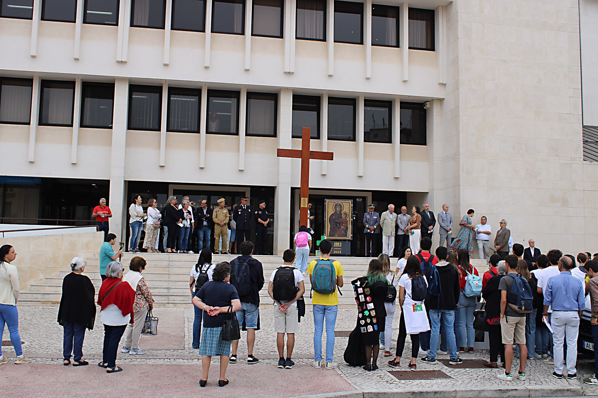Foi num ambiente de festa e de fé que teve lugar na última segunda-feira a passagem pelas Caldas da Rainha dos dois símbolos da Jornada Mundial da Juventude (JMJ): a cruz peregrina e o ícone de Nossa Senhora Salus Populi Romani.