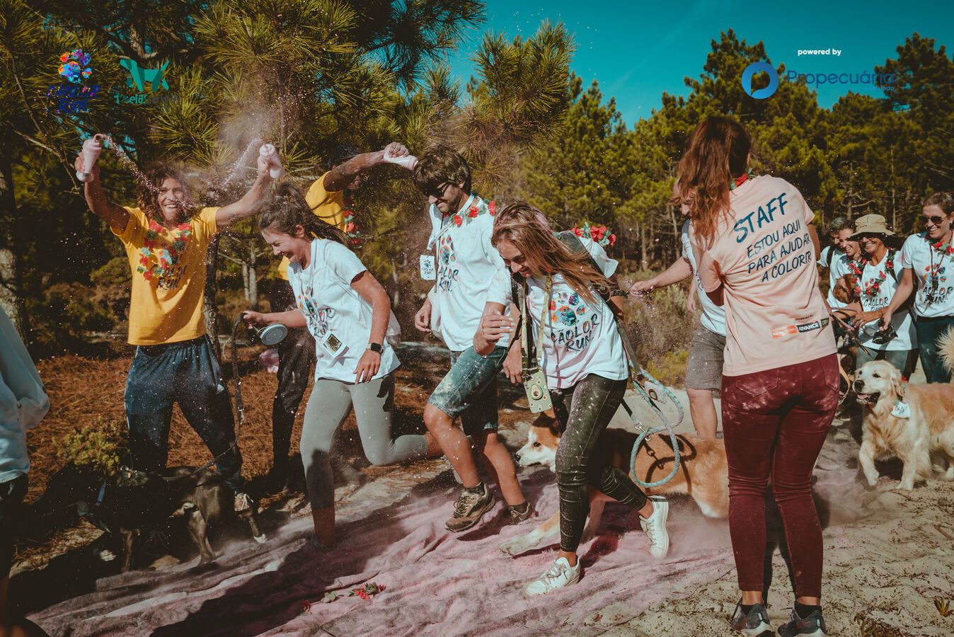 Segundo a organização, Trelas Soltas – escola de treino e modificação comportamental, “os pós coloridos usados são feitos de amido de milho, o que torna esta corrida adequada para todas as idades e animais”.
