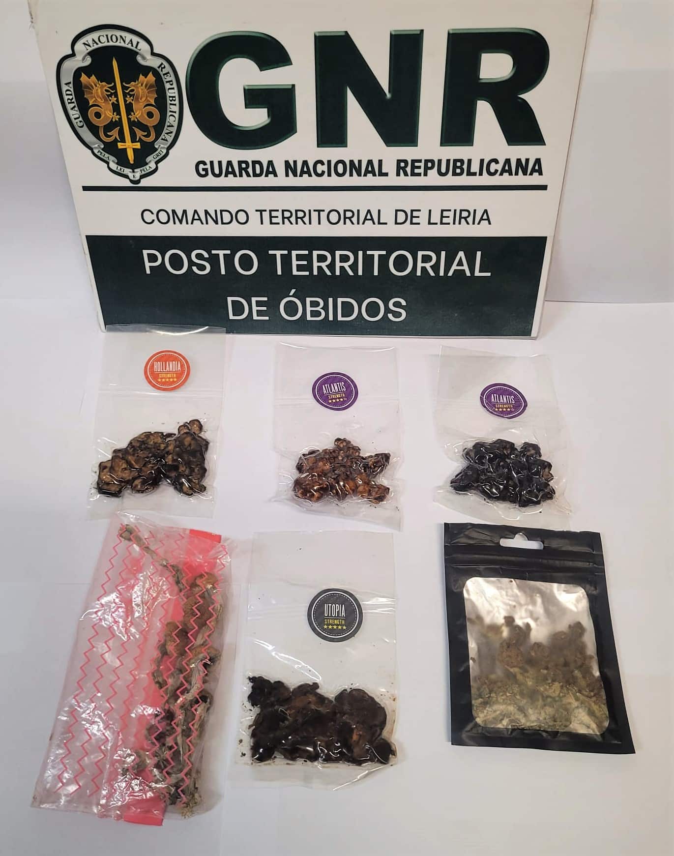 Numa primeira ação policial, no dia 23 de setembro, os militares abordaram um veículo na localidade do Bairro da Senhora da Luz, no concelho de Óbidos, tendo o seu ocupante demonstrado algum nervosismo. No seguimento da ação, foi realizada uma revista pessoal de segurança ao condutor, de 32 anos, e uma busca sumária ao veículo, tendo sido possível apreender 75 gramas de cogumelos alucinogénios e duas doses de haxixe.