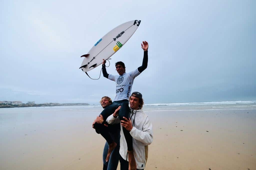 O surfista, de 20 anos, conquistou o título ao qualificar-se para as meias-finais do evento, superando o seu adversário na disputa do troféu máximo do surf português, Guilherme Ribeiro, campeão nacional em 2022 e que acabaria por vencer a final da etapa, neste domingo, frente a Martim Paulino (16.75 contra 10.35).