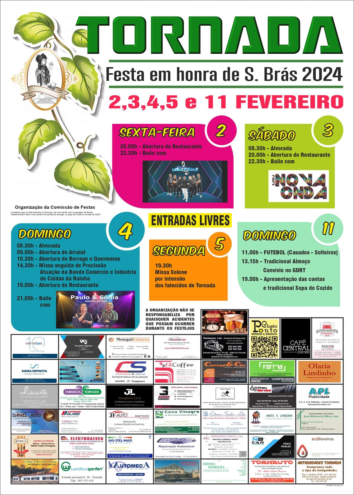 A festa em honra de São Brás, em Tornada, vai decorrer nos dias 2, 3, 4, 5 e 11 de fevereiro.