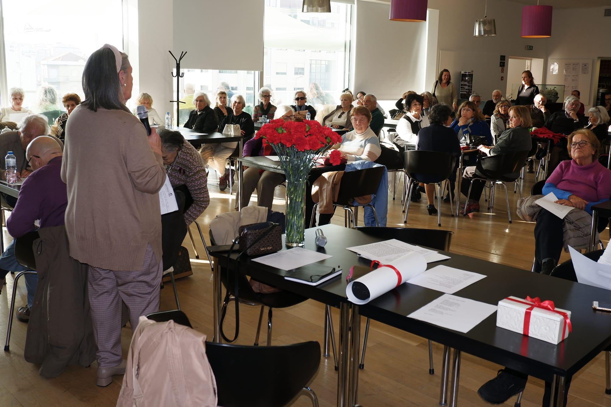 Ao longo da tarde foram lidos 50 poemas de vários poetas portugueses pelas dezenas de pessoas que encheram por completo o espaço. Houve também música, a cargo de Manuel Teixeira, do núcleo de Torres Vedras da associação, que cantou várias músicas de Zeca Afonso.