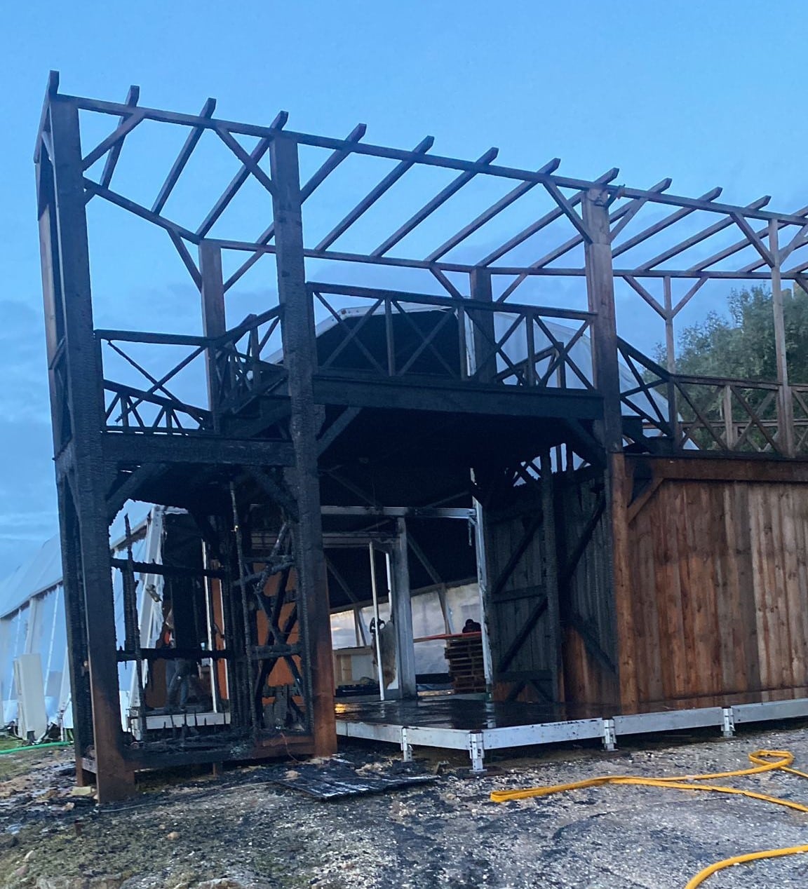 “À nossa chegada o incêndio encontrava-se ativo, com um desenvolvimento rápido e intenso, face à disponibilidade de combustível presente, com propagação a uma estrutura provisória (tenda) de apoio ao evento agendado para a próxima semana”, relatou a corporação.