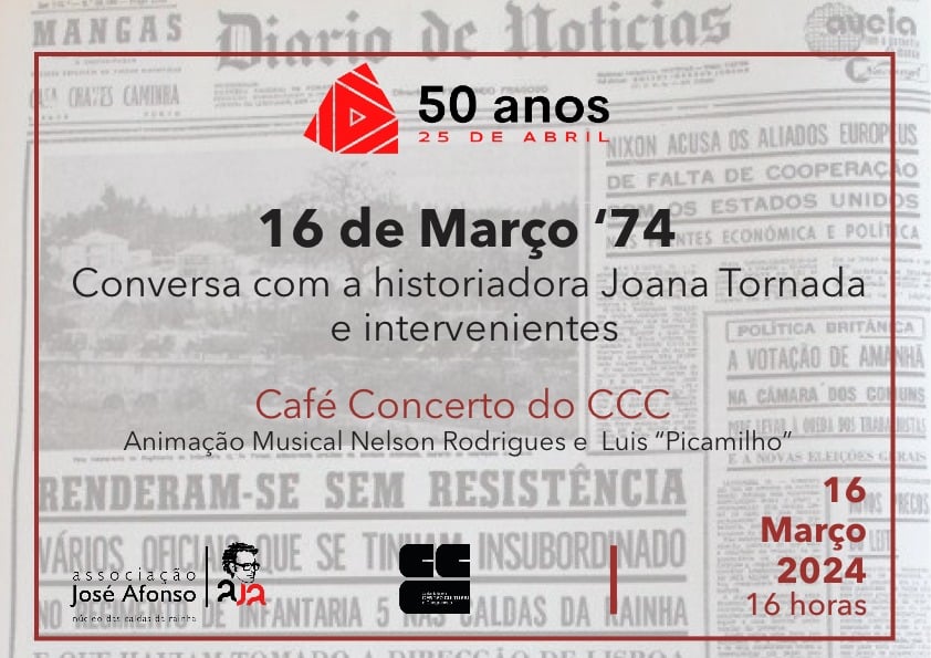 No âmbito dos 50 anos do 25 de Abril, o Núcleo das Caldas da Rainha da AJA – Associação José Afonso vai realizar uma conversa sobre o 16 de Março de 1974 com a historiadora Joana Tornada, especialista em História Contemporânea, bem como com alguns intervenientes directamente envolvidos naquele momento histórico.