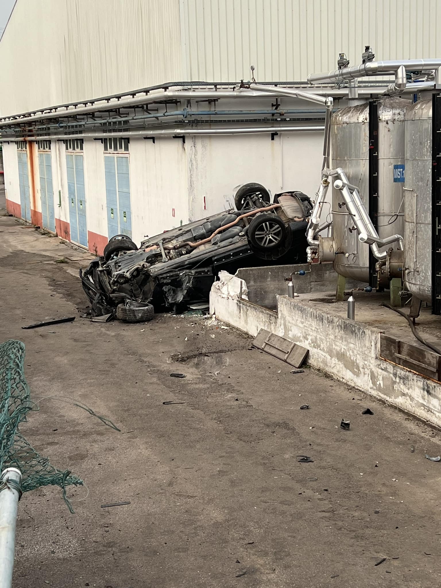 O carro ficou capotado nas traseiras da fábrica de velas Promol e o condutor, que não sofreu ferimentos, foi detido pela PSP e sujeito a teste de álcool, acusando 1,23g/l de álcool no sangue, um valor acima do permitido na lei.