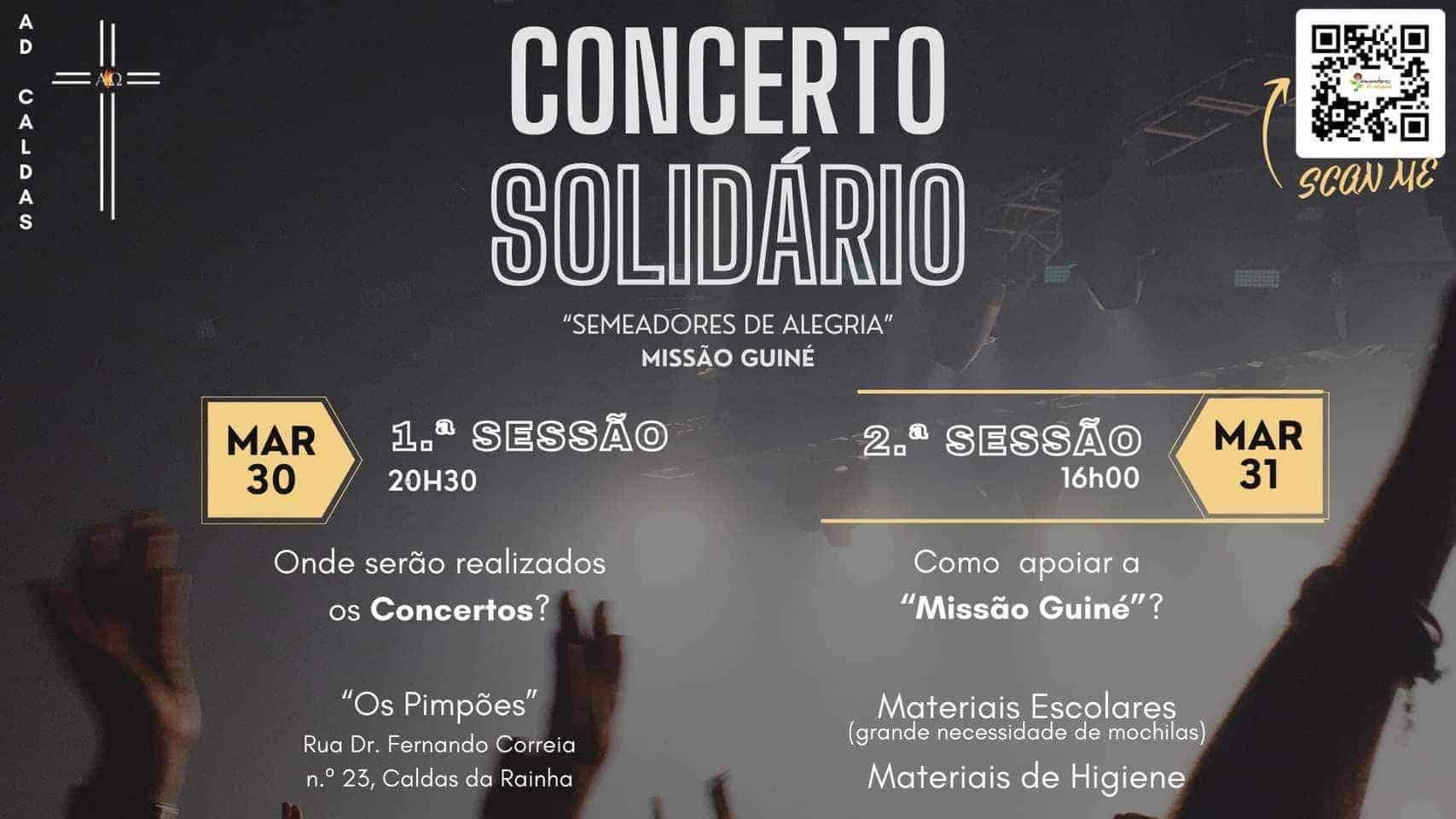 Um concerto solidário de angariação de bens para apoio do trabalho missionário na Guiné vai ter lugar no dia 30 de março, às 20h30, e no dia 31 de março, às 16h00, nos Pimpões, nas Caldas da Rainha.