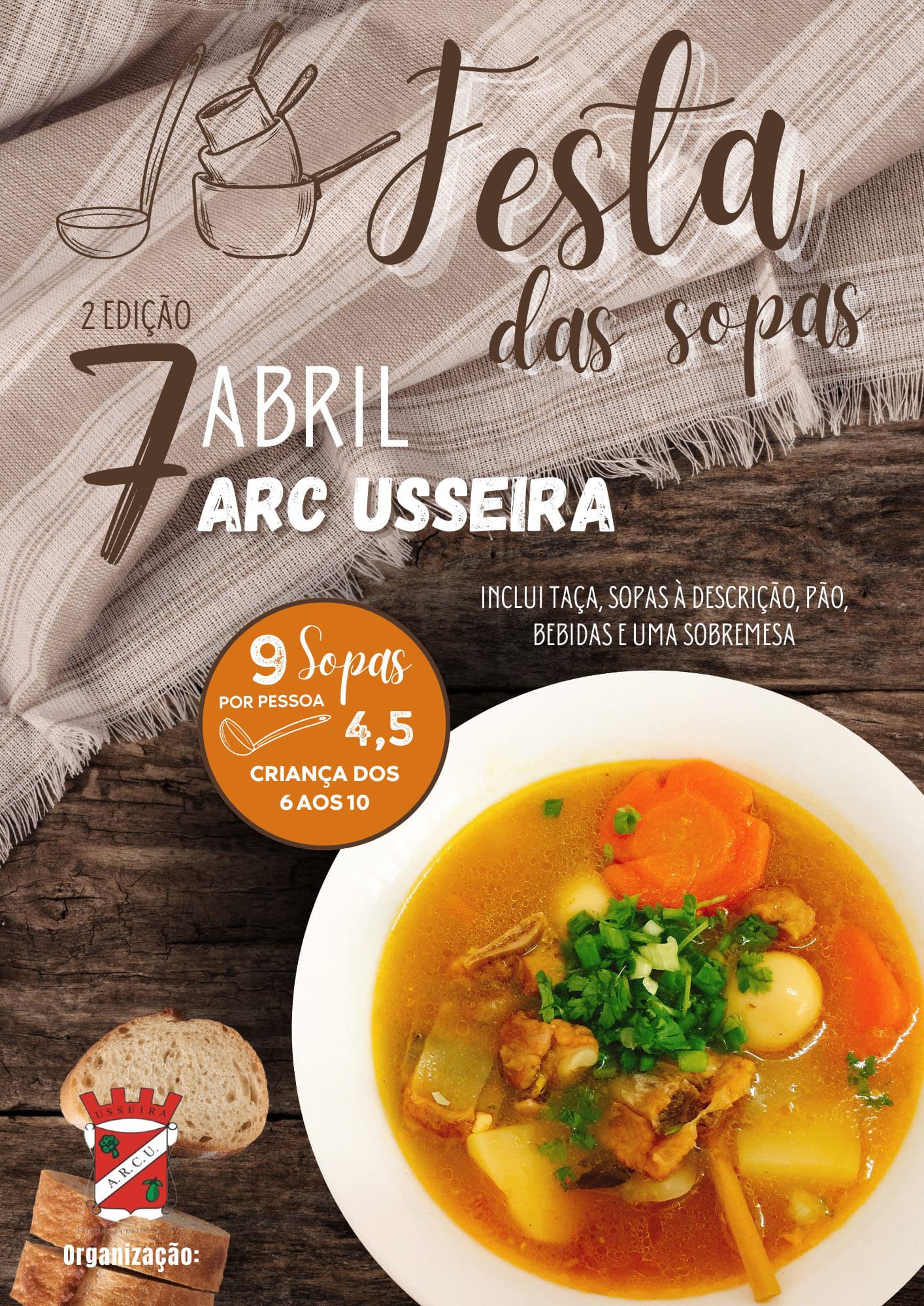 A 2ª edição da Festa das Sopas, na Usseira, em Óbidos, vai decorrer no dia 7 de abril, a partir das 12h30, no recinto da Associação Recreativa e Cultural da Usseira, entidade organizadora.