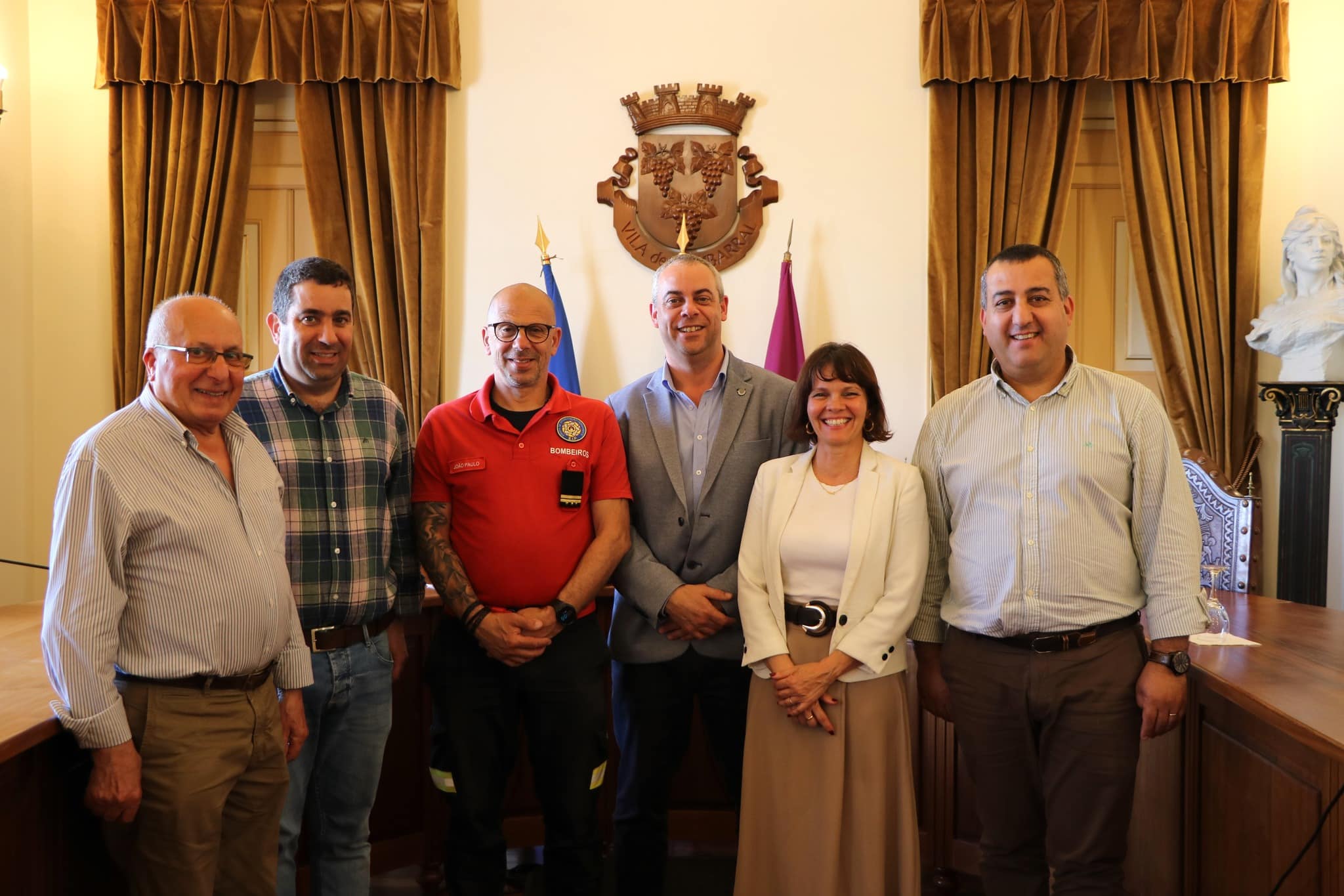 O presidente da direção da Associação Humanitária dos Bombeiros Voluntários do Bombarral, Vítor Garcia, e o adjunto do comando da corporação, João Paulo, foram recebidos no Salão Nobre dos Paços do Concelho, pelo vice-presidente do Município, Nuno Vicente, e pelos vereadores Fátima Coelho e Bruno Santos.