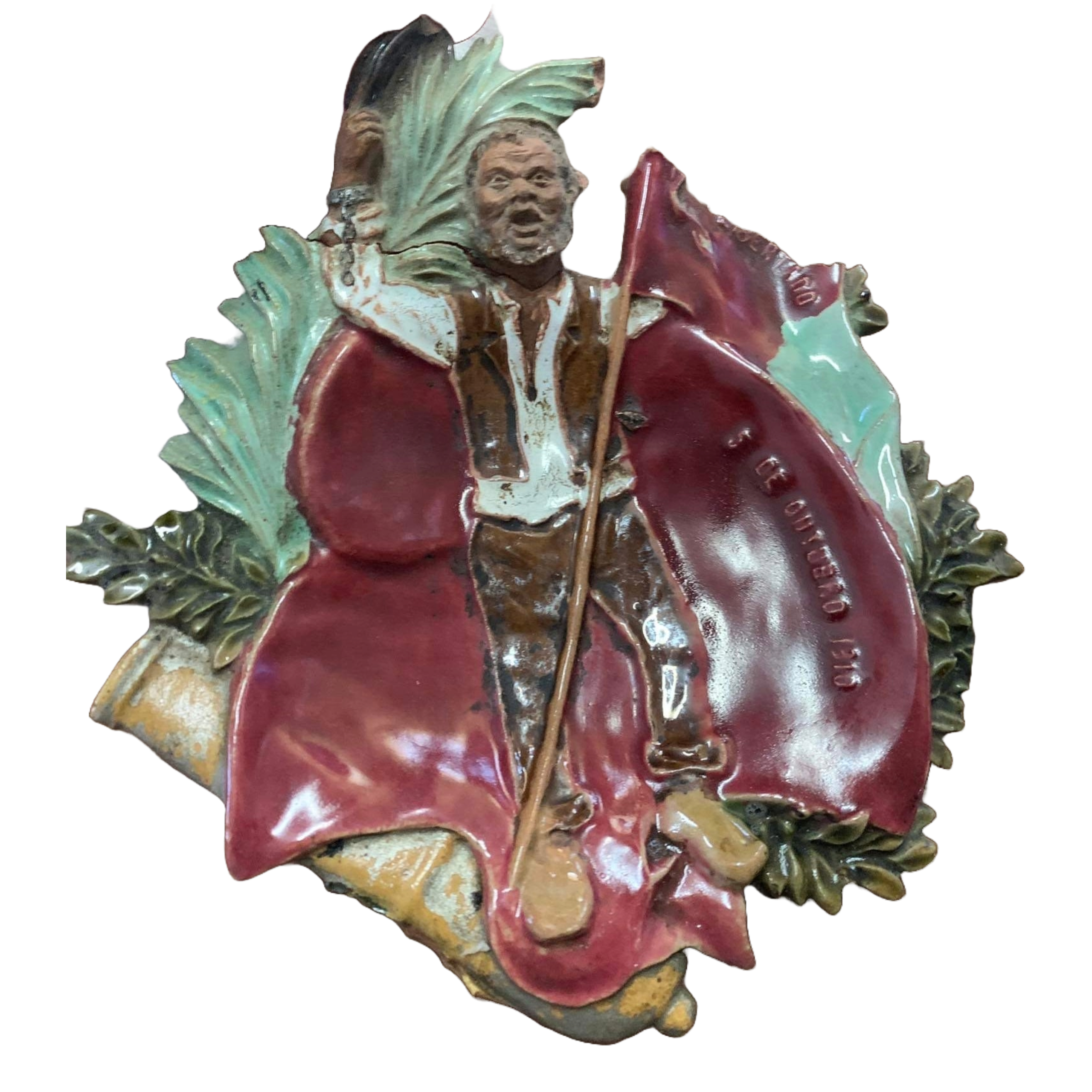 A peça de cerâmica retrata o Zé Povinho a segurar a bandeira portuguesa e na bandeira tem escrito a data de 5 de outubro de 1910, uma peça que possivelmente foi “lançada pela implementação da República Portuguesa”, disse Nuno da Silva, que está a fazer uma investigação sobre a obra e que ainda terá que ser restaurada.